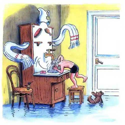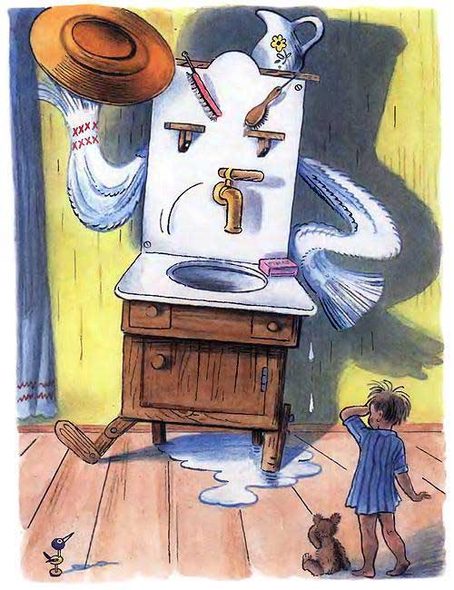 Мальчик-неряха в недоумении: от него принялись разбегаться привычные вещи, одежда и даже самовар с пирогами, не желающие иметь дело с неумытым грязнулей. Теперь маленькому «поросёнку» придётся познакомиться с грозным умывальником Мойдодыром. Чтобы вновь сделать непослушного малыша чистым и опрятным, он готов бросить в бой с грязью целое войско...