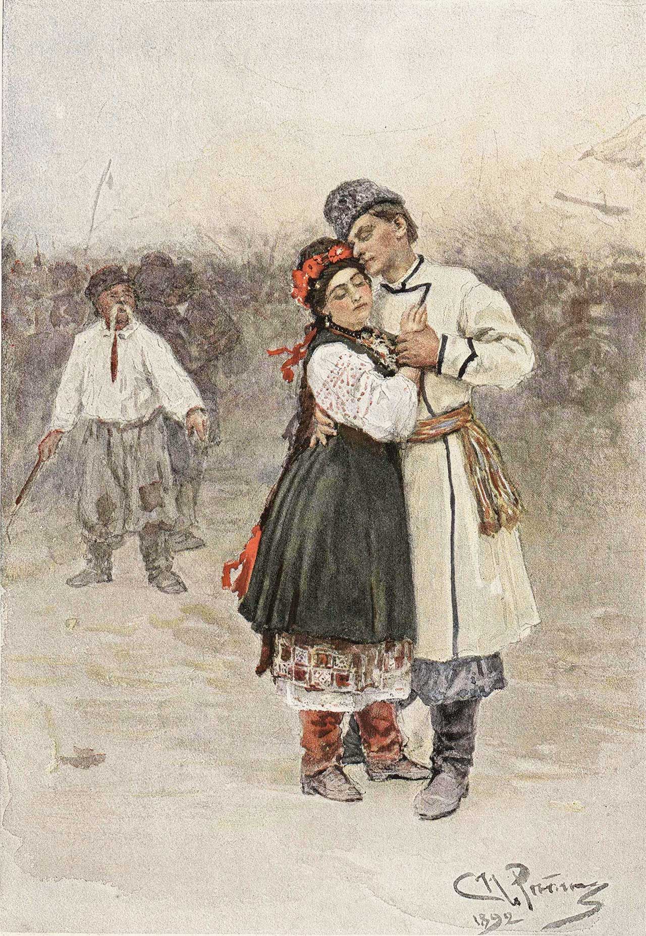 Не успела Параска переступить за порог хаты, как почувствовала себя на руках парубка в белой свитке, который с кучею народа выжидал ее на улице.