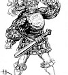 Схватил Манк-Манк тяжелую булаву, замахнулся и изо всей силы бросил ее вверх. Взлетела булава выше самых высоких деревьев, выше самой высокой горы и скрылась в тучах. И только через час послышался вой и свист и булава упала, ушла в землю по самую рукоятку.