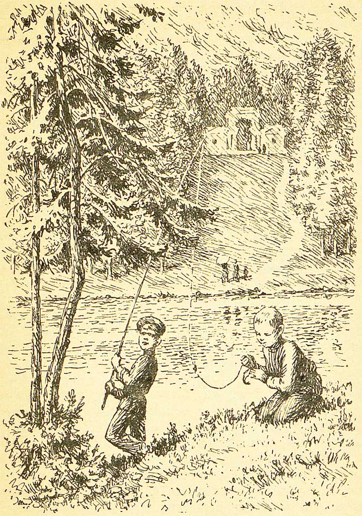 — Смотри-ка, растолстел как! Чистый купец! — радовалась Надежда, сама толстая и красная от кухонного жара, как медный самовар. Она приписывала это тому, что много его кормит. Но Петька ел совсем мало, не потому, чтобы ему не хотелось есть, а некогда было возиться: если бы можно было не жевать, глотать сразу, а то нужно жевать, а в промежутки болтать ногами, так как Надежда ест дьявольски медленно, обгладывает кости, утирается передником и разговаривает о пустяках. А у него дела было по горло: нужно пять раз выкупаться, вырезать в орешнике удочку, накопать червей, — на все это требуется время. Теперь Петька бегал босой, и это в тысячу раз приятнее, чем в сапогах с толстыми подошвами: шершавая земля так ласково то жжет, то холодит ногу. Свою подержанную гимназическую куртку, в которой он казался солидным мастером парикмахерского цеха, он также снял и изумительно помолодел. Надевал он ее только вечерами, когда ходил на плотину смотреть, как катаются на лодках господа: нарядные, веселые, они со смехом садятся в качающуюся лодку, и та медленно рассекает зеркальную воду, а отраженные деревья колеблются, точно по ним пробежал ветерок.