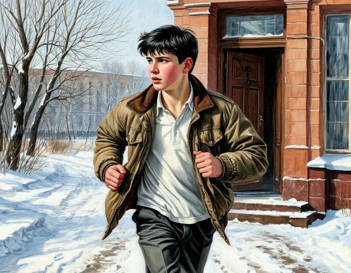 Бежит мальчишка в батнике