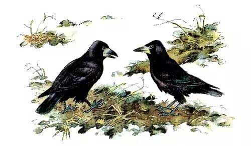Тут не прошло и трех дней — откуда ни возьмись, уж сидят на проталинах черные, с белыми носами грачи.