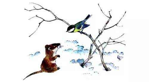 Смотрит: лесная мышь из-под снега выскочила. Дрожит, вся взъерошилась.