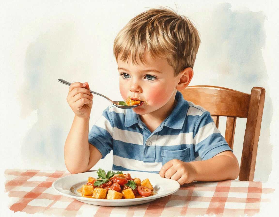 Когда я был маленький, я плохо жевал. Всегда держал еду за щекой. А мама всегда приговаривала: «Жуй как следует!» И когда я ел, мама рассказывала мне сказки.