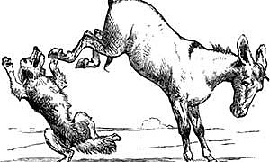 Ворон унес кусок мяса и уселся на дереве. Лисица увидела, и захотелось ей получить это мясо. Стала она перед вороном и принялась его расхваливать: уж и велик он, и красив, и мог бы получше других стать царем над птицами, да и стал бы, конечно, будь у него еще и голос. Ворону и захотелось показать ей, что есть у него голос; выпустил он мясо и закаркал громким голосом. А лисица подбежала, ухватила мясо и говорит: