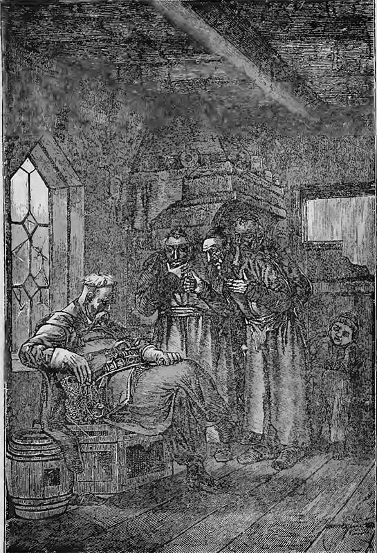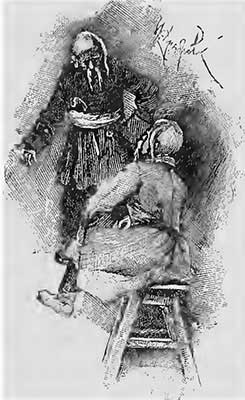 Бедная старушка, привыкшая уже к таким поступкам своего мужа, печально глядела, сидя на лавке. Она не смела ничего говорить; но, услыша о таком страшном для нее решении, она не могла удержаться от слез; взглянула на детей своих, с которыми угрожала ей такая скорая разлука, — и никто бы не мог описать всей безмолвной силы ее горести, которая, казалось, трепетала в глазах ее и в судорожно сжатых губах.