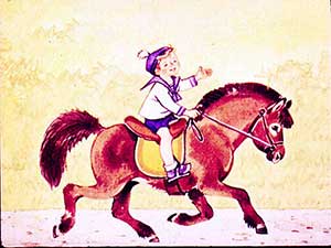 На пони, —
