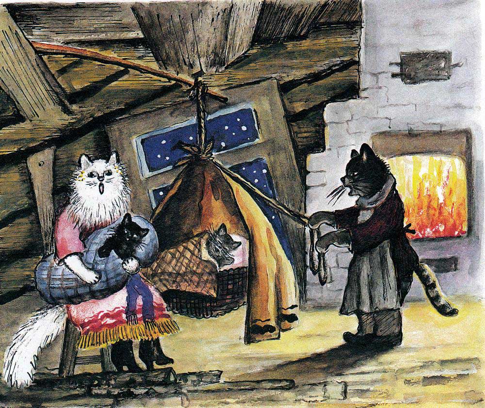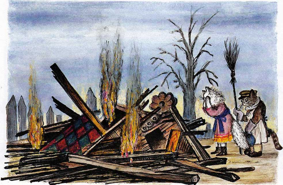 Богатая кошка принимает гостей в роскошно обставленном доме, хвастаясь его изысканным убранством, а собственных бедных племянников презрительно не пускает на порог. Но вскоре гордячка сама попадает в беду, лишается нажитого добра и оказывается на улице. Поспешат ли ей на выручку вчерашние друзья и почитатели?