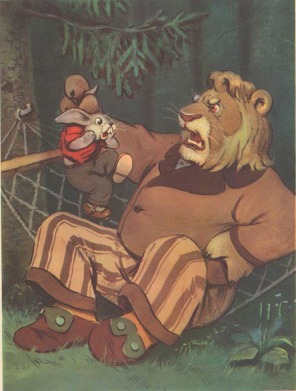 Оказавшись на праздничном застолье у Ежа, Заяц не рассчитал с угощением и перебрал с выпивкой. Не внимая предостережениям друга, пьяный Зайчишка так расхрабрился, что принялся поносить могучего Льва. Только по дороге домой косому бахвалу довелось встретиться с ним лично, удастся ли ему теперь спастись от львиного гнева?