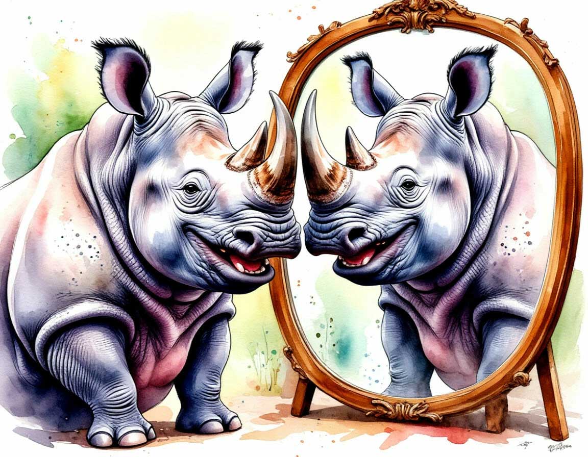 – Ну тогда посмотри на себя! – сказал Слон и протянул Носорогу зеркало.