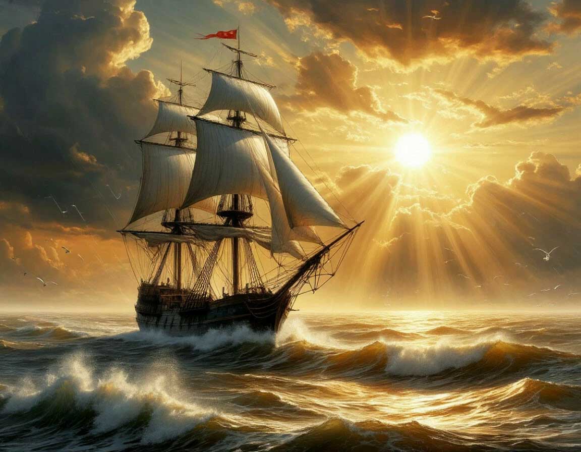 На океанском корабле.