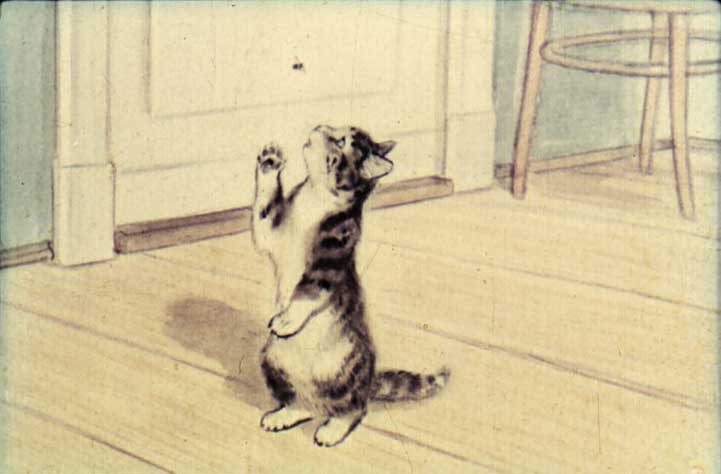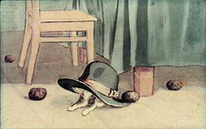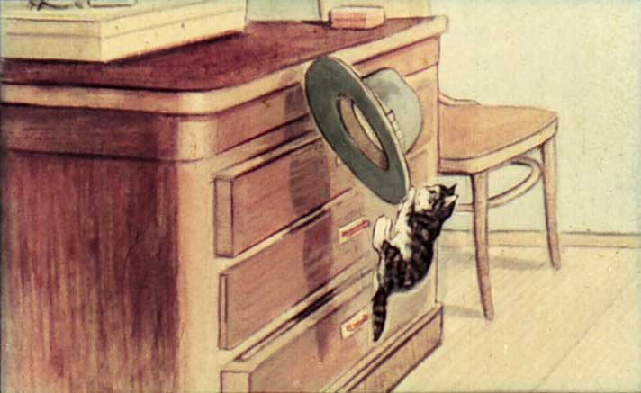 - Мяу! - закричало что-то. Глядь, из-под шляпы высунулся серый хвост, потом лапа, а потом и сам котенок выскочил.