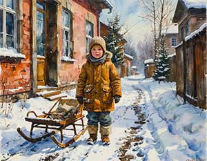 — Так кататься невыгодно. Можно расквасить нос. Пойди-ка ты лучше домой за санками. У тебя ведь есть санки.