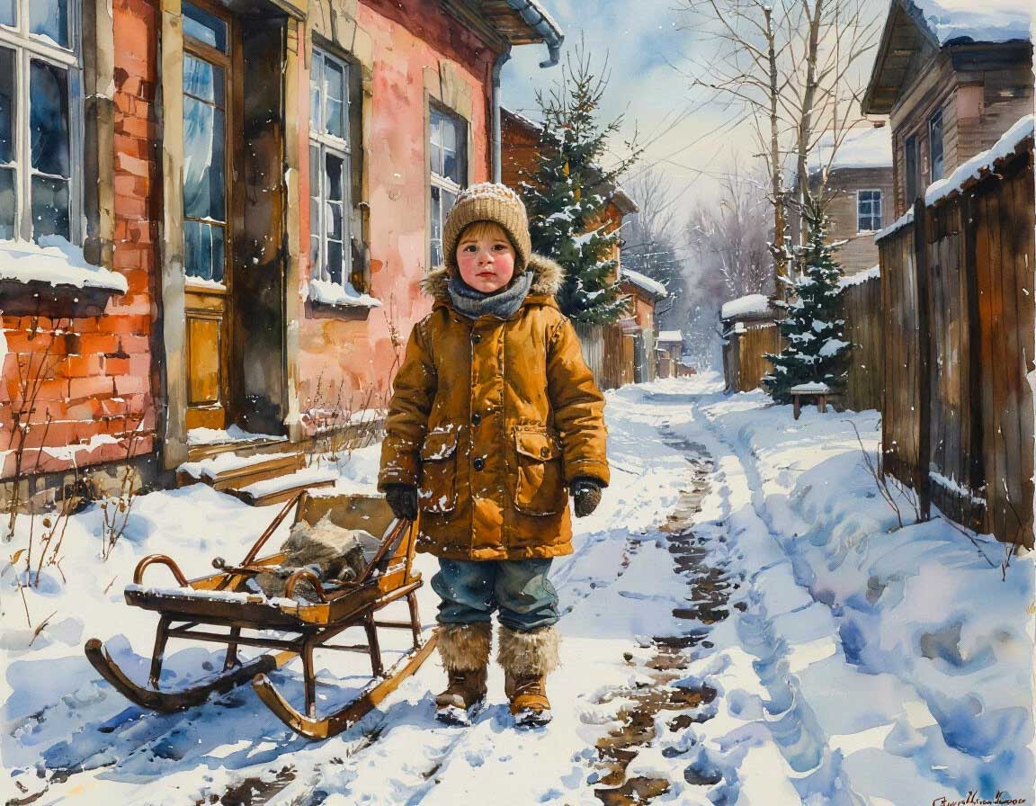 — Ну, на санках, конечно, легче, — согласился отец. — А другие ребята сколько собрали — больше, чем ты, или меньше?