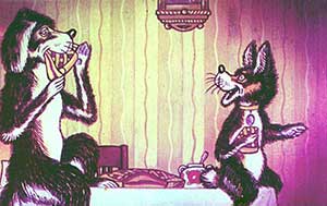 — Садись за стол, сейчас я тебя угощать буду — предложил Барбос.
