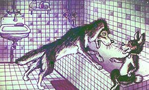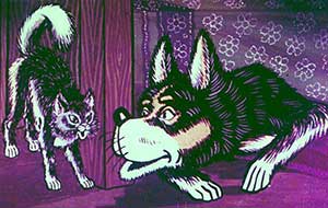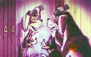 Барбос тоже подошёл к зеркалу. Бобик увидел его отражение и закричал: