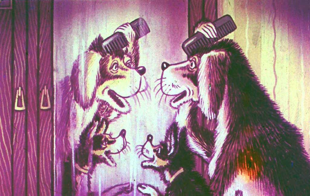 Бобик взял гребешок, подошёл к зеркалу и увидел в нём своё отражение.