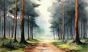 Он попрощался и ушел. Мы пошли с Ваней по лесной дороге. Лес делался все выше, таинственней и темнее. На соснах застыла ручьями золотая смола.