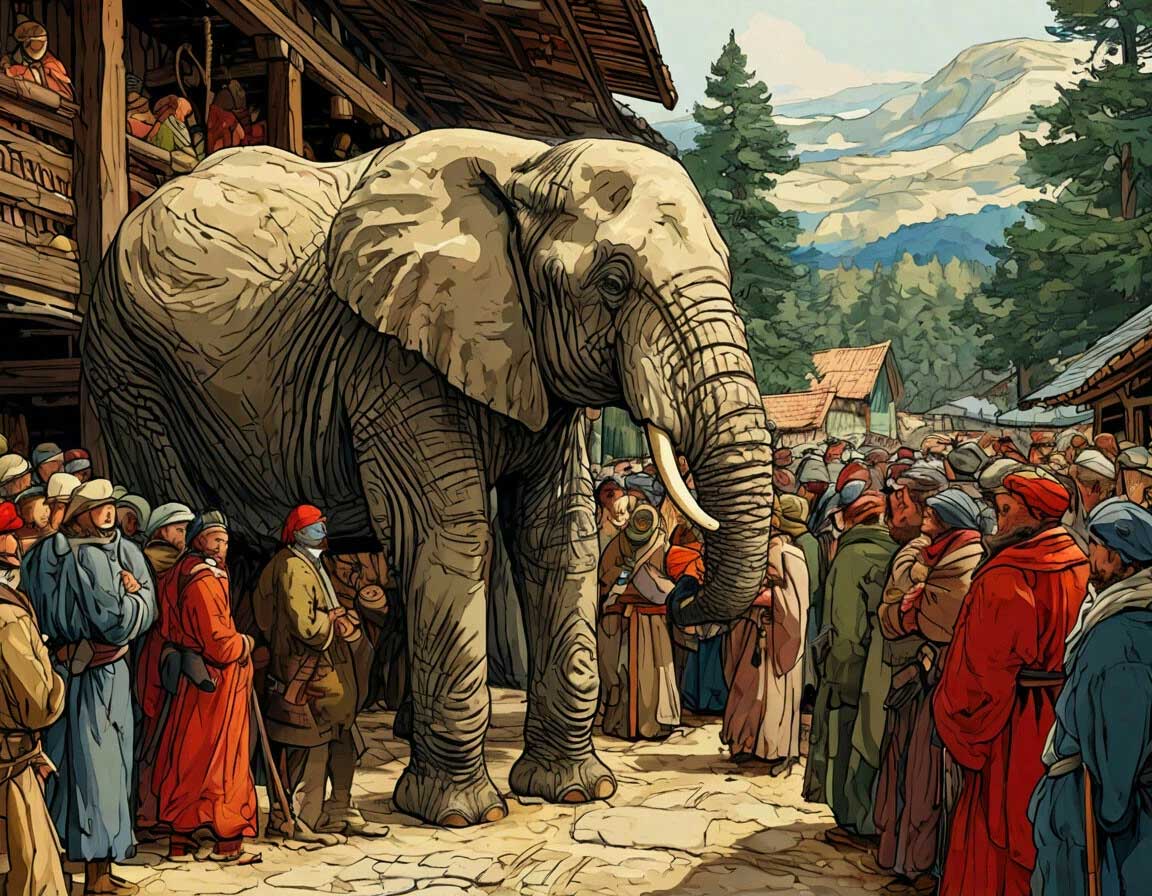 Один индийский царь велел собрать всех слепых и, когда они пришли, велел им показать своих слонов. Слепые пошли в конюшню и стали щупать слонов.