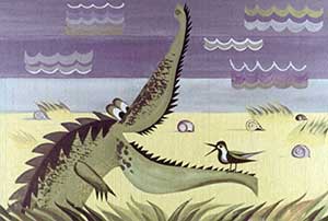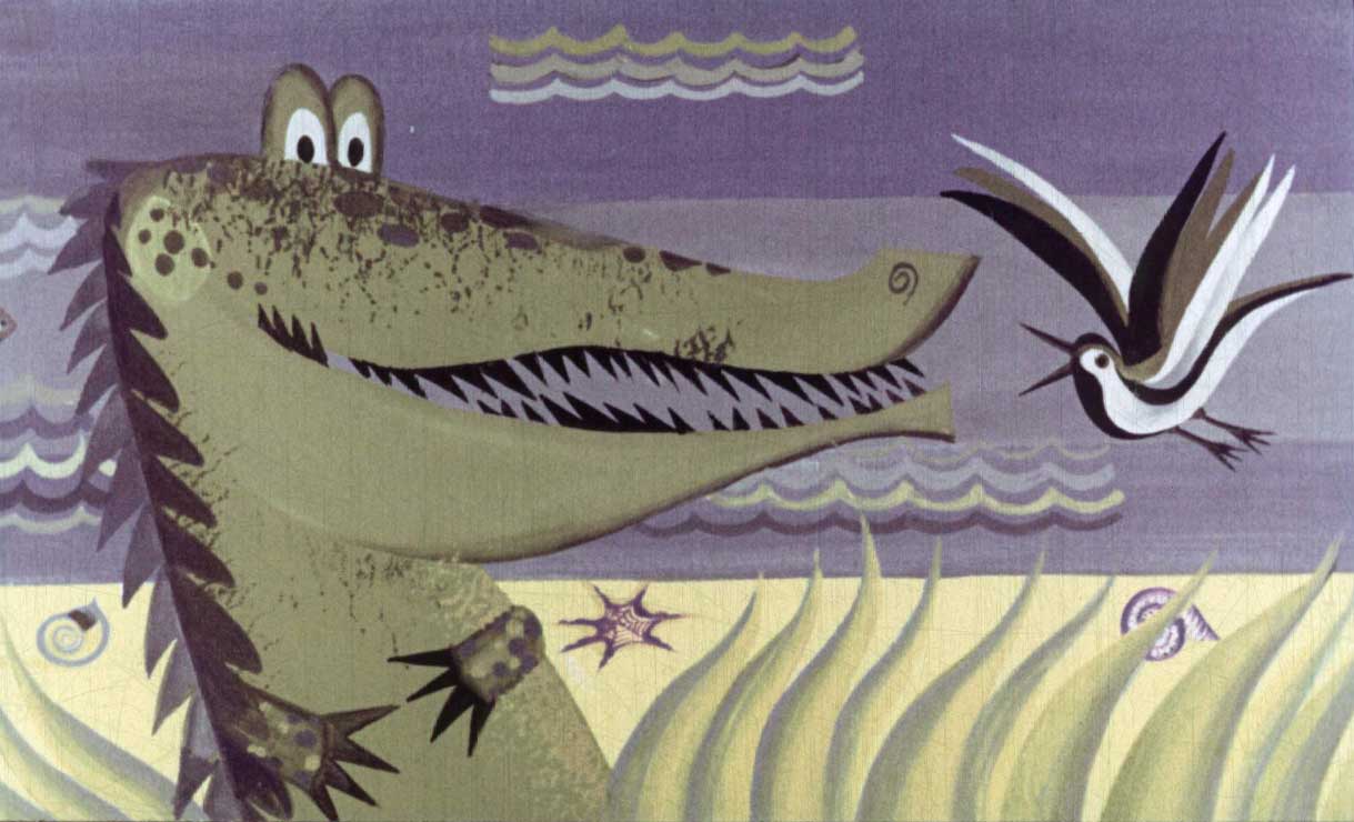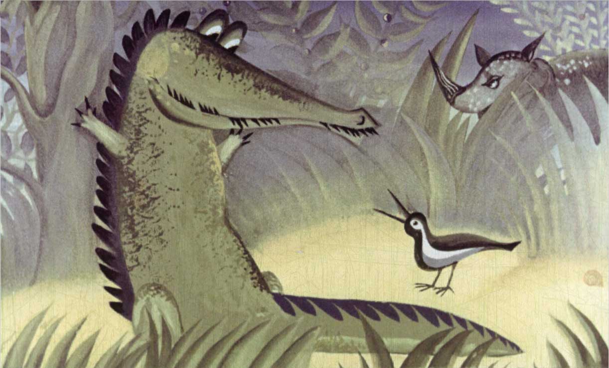 И тут птичка Тари, маленькая, белая с черным птичка, ростом чуть побольше голубя и чуть поменьше пигалицы, сделала такую удивительную вещь, что все ахнули. Она смело подлетела прямо к страшной пасти Крокодила, к самому его носу, и скомандовала: