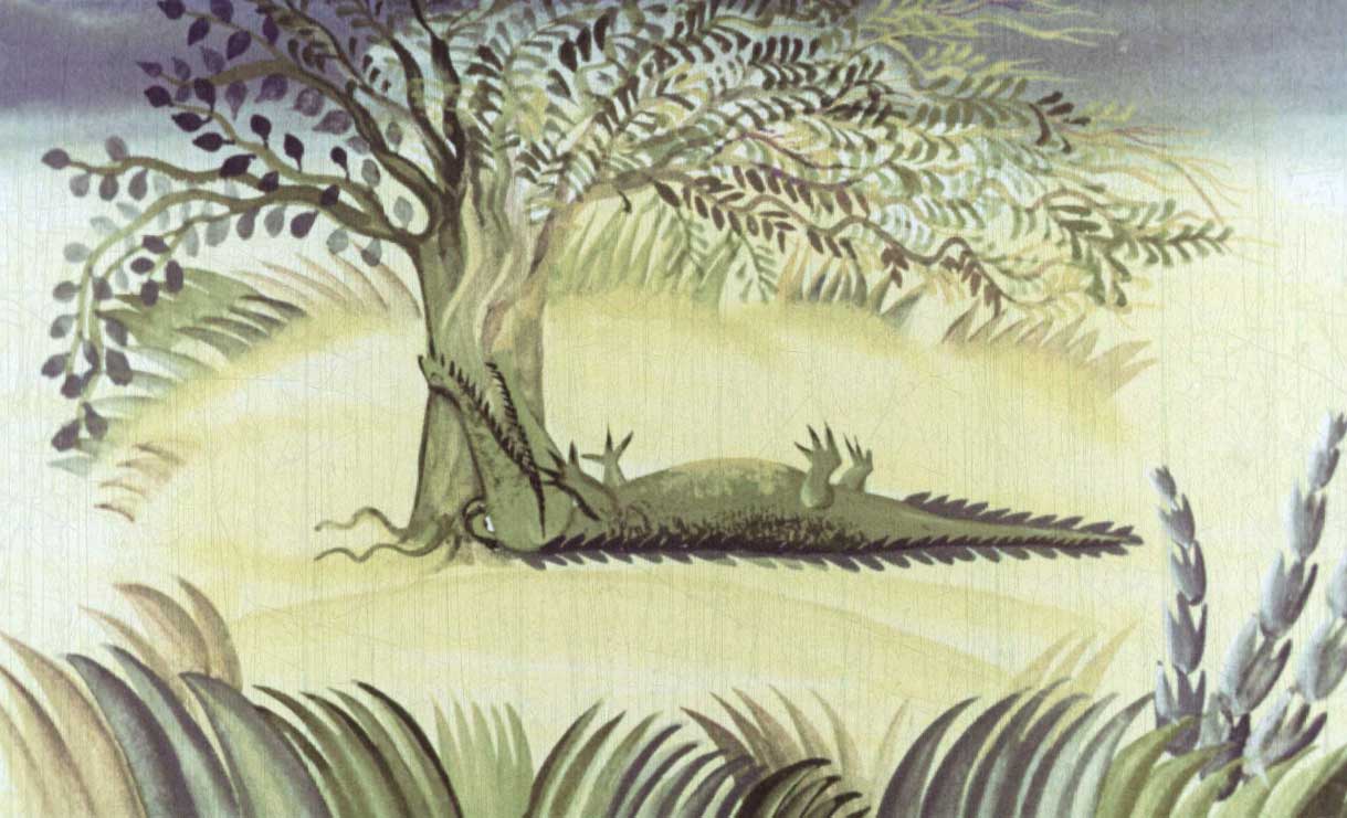И наконец бедный Крокодил в отчаянии растянулся под большим-пребольшим бананом (под маленьким он бы не поместился) и заревел в голос.