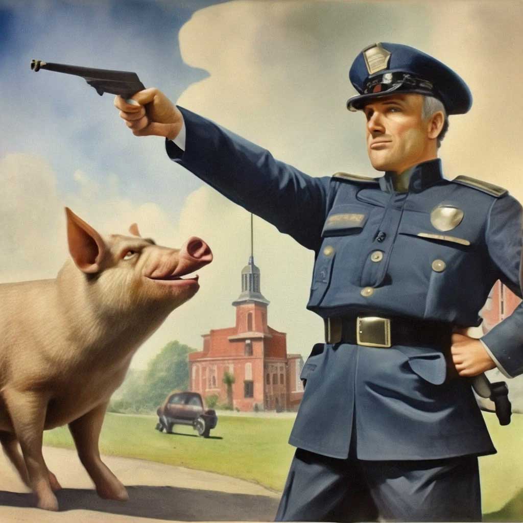 — Ага, — говорит, — твоя свинья! Вот я её сейчас из револьверу трахну. А тебя в отделение отправлю. Будешь свиней распущать.