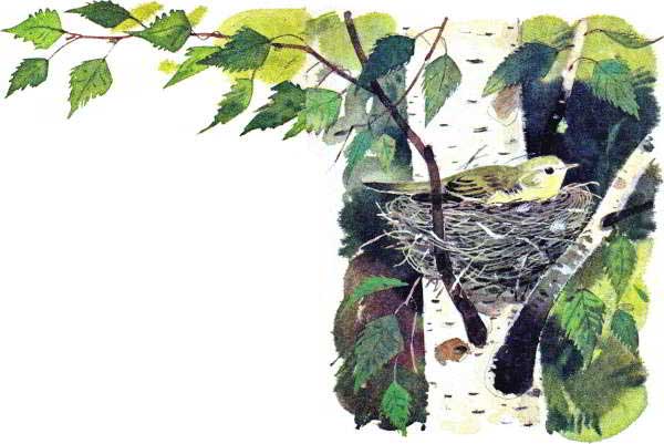 Когда я подошёл к берёзе, пересмешка слетела с гнезда. Она порхала по ветвям соседних деревьев и жалобно посвистывала, словно умоляла не трогать её гнезда.