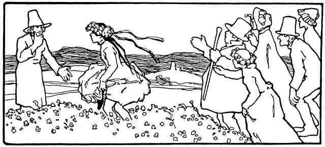 И открылись у ней глаза, глядь — стоит она с поднятой юбкой среди поля, где растет, зацветая голубыми цветами, лен. Как увидели это все, стали ее бранить, над ней насмехаться, — и пришлось невесте бежать.