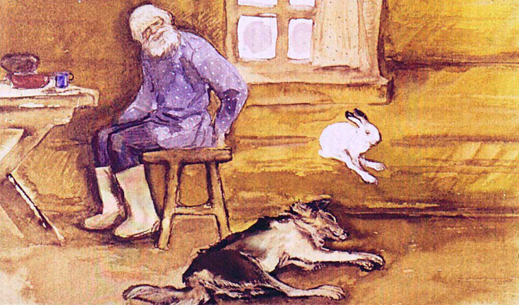 — Что, брат, совестно? — шутил над ним старик. — Оно, конечно, заяц — тварь вредная, озорная, а все-таки оно того… Может, и в ём своя заячья душонка есть, так, плохонькая совсем душонка.