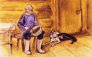 Пока старик ходил, Еремка не тронул зайца, а только съел у него все угощение — корочки черного хлеба, кашу и молоко. В благодарность он лизнул зайца прямо в мордочку и принес в награду из своего угла старую обглоданную кость. Еремка всегда голодал, даже когда ему случалось съесть какого-нибудь зайчонка. Когда Богач вернулся, он только покачал головой: какой хитрый зайчишка: когда угощают, так и не смотрит, а когда ушли, — так все дотла поел.