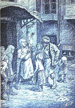 Дети постарше выбегали на улицу и заводили здесь свои шалости, постоянно рискуя попасть под лошадь и получая от прохожих тумаки и ругань. Самые смелые добегали до угла улицы, где был устроен крошечный сквер. Улица, обставленная громадными домами, походила на какое-то ущелье, и чахлые деревья в сквере напрасно тянулись кверху за светом и теплом. Они походили на городскую уличную детвору. Такие же испитые, тощие, с какими-то зелеными лохмотьями вместо листвы, и такие же грязные от уличной пыли.