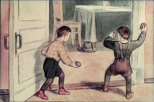 Они вернулись на кухню, набрали из корзины картошки и стали швырять ее в шляпу" Швыряли, швыряли, наконец Вадик попал. Шляпа как подскочит кверху!