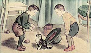 - Мяу! - закричало что-то. Глядь, из-под шляпы высунулся серый хвост, потом лапа, а потом и сам котенок выскочил.