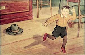Вадик подошел поближе и стал смотреть на шляпу. Вдруг шляпа поползла прямо к нему. Он как закричит: