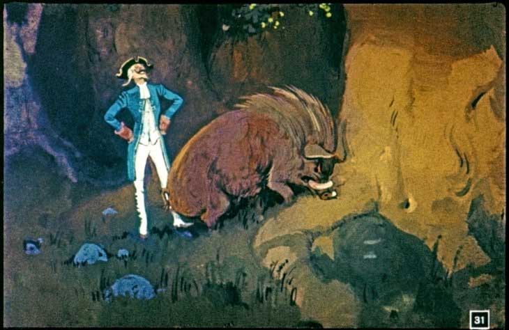 Иллюстрации: Студия "Диафильм". Приключения барона Мюнхаузена 1957-1958г. Художник: В.Бордзиловский.