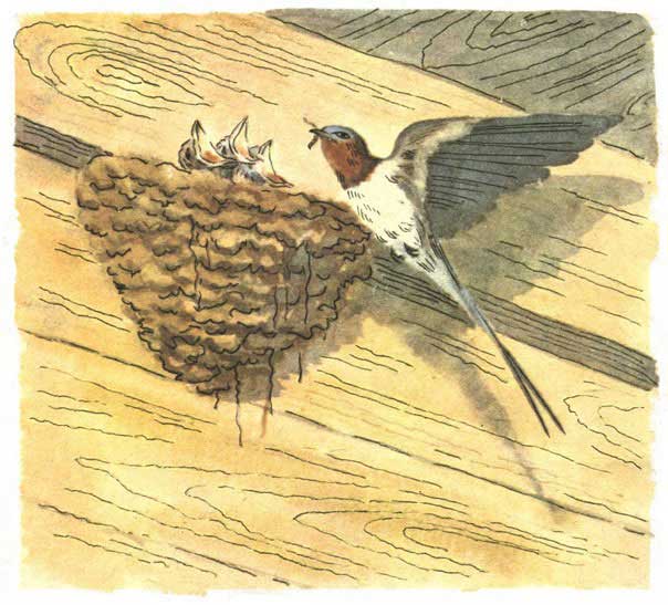 — Не разоряй гнезда, — сказал мальчику отец, — весной ласточка опять прилетит, и ей будет приятно найти свой прежний домик. Ласточка кормит птенцов.
