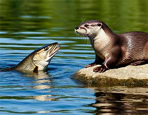 Вошла Выдра в воду осторожно-осторожно: сперва по грудку, потом по шейку… поплыла, поплыла… да вдруг как кинется на судака!